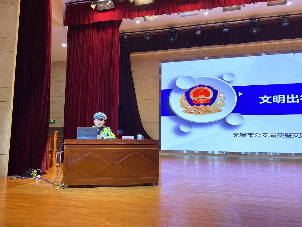 关爱生命始于心,交通安全践于行。为加强全校师生交通安全意识,培养学生文明出行的交通习惯,有效预防和减少道路交通事故的发生, 12月9日,学校安全保卫处特邀无锡市滨湖区交警大队冯黎钢警官走进校园,围绕“文明出行、安全相伴”开展交通安全知识专题讲座。