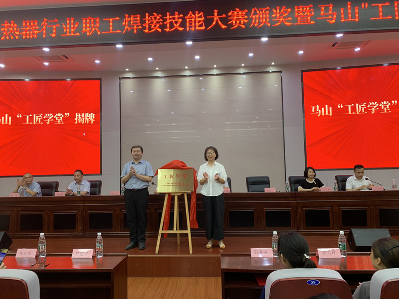 为了延展技能竞赛的宽度和深度,推动产教融合、校企合作、工学结合,马山街道总工会和学校船舶工程学院联合成立马山“工匠学堂”。高祥生、朱雨兰为工匠学堂揭牌。