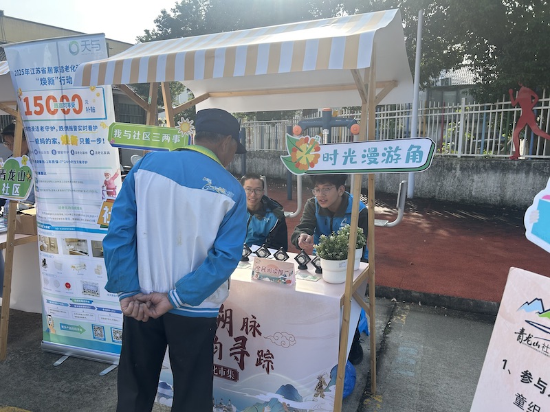 2025年11月10日上午,青龙山社区居家养老服务中心广场上暖意融融、人头攒动,“青龙溯脉·四韵寻踪”文化集市在这里温情启幕。船舶工程学院学生志愿者积极参与本次活动,与社区工作人员共同为居民带来一场集便民服务、文化体验、政策咨询于一体的“暖心集市”。