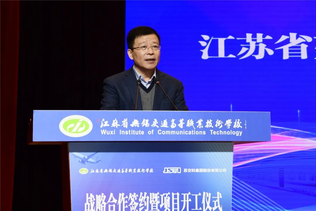 金凌副厅长在讲话中指出,生产性交通工程试验检测中心的共建,是无锡交校和苏交科集团共同落实国家和省相关政策的坚实举措和实际行动。近年来,无锡交校以产教融合协同育人为主线,以四学院三中心为载体,以三教改革为抓手,聚焦现代交通运输体系和社会经济转型发展,着力提升五年制高职人才培养质量,实现了专业结构与交通行业、区域经济、企业需求深度融合,提升了学校服务交通运输现代化建设的能力。苏交科集团拥有工程行业各领域最高等级资质,是国内基础设施领域咨询行业龙头企业、工程咨询行业首家上市公司,2022年,获得省政府颁发的江苏省省长质量奖,是设置奖项以来江苏省交通领域第一家获此殊荣的企业。这些发展成就为校企双方进一步高质量协同发展奠定了坚实的基础。此次共建,是无锡交校和苏交科集团共同落实国家和省相关政策的坚实举措和实际行动。他对共建生产性交通工程试验检测中心提出三点希望:要聚合校企力量,打造校企合作典范。要聚焦人才培养,满足行业技能人才需求。要聚力行业发展,服务交通运输事业。