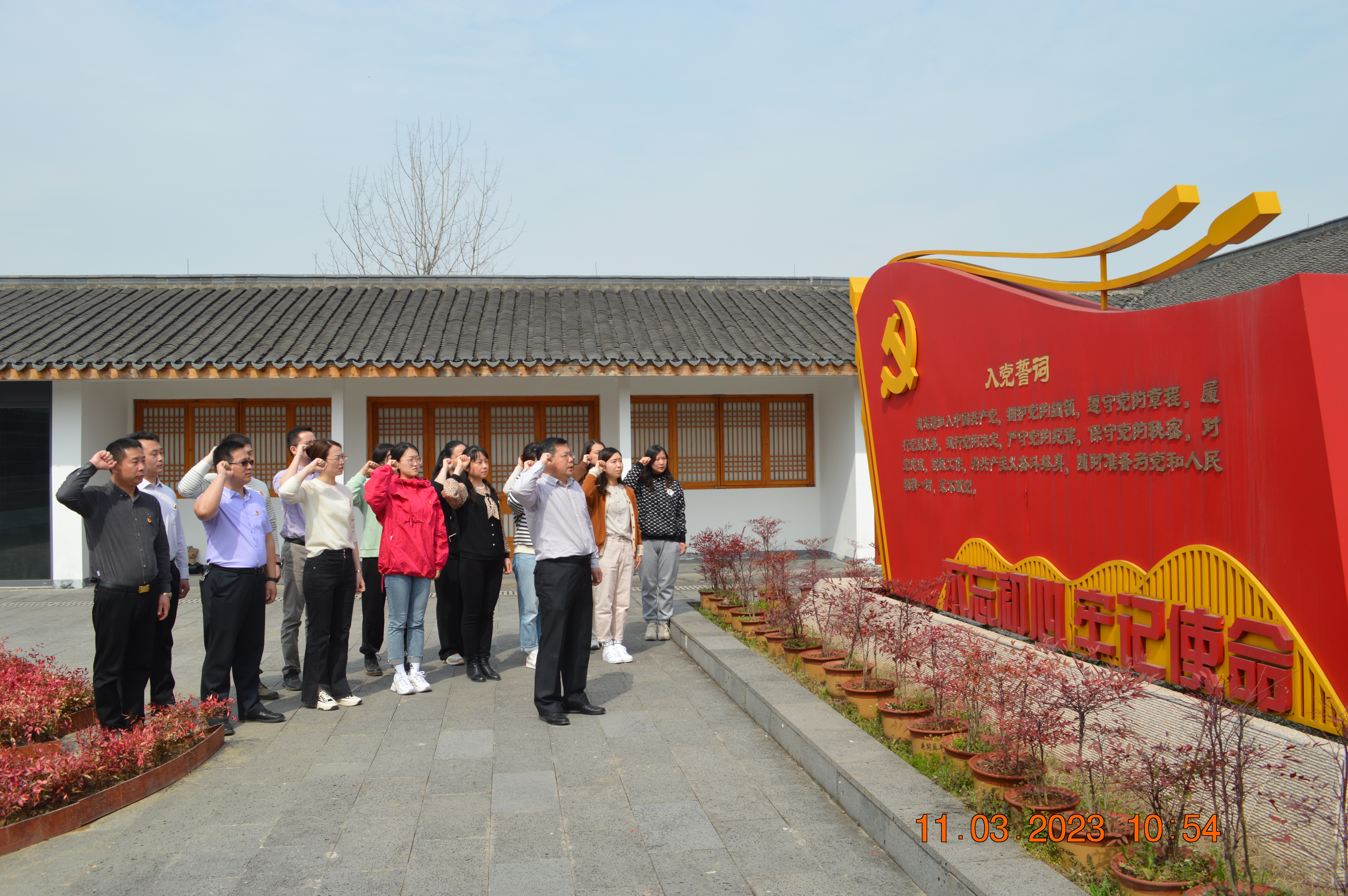 为深入学习贯彻习近平新时代中国特色社会主义思想和党的二十大精神,加强党员理论武装、锤炼党性,通过感受革命先辈艰苦创业,增强党员的使命感、责任感和担当精神。3月11日,学校组织人事处党支部、党政办党支部、财务处党支部和纪检质管党支部联合开展“追寻红色足迹,传承革命精神”主题党日活动,全体党员赴“党建特色村”、“四千四万”精神现场教学点宜兴市白塔村、太华山新四军和苏南抗日根据地纪念馆参观学习。