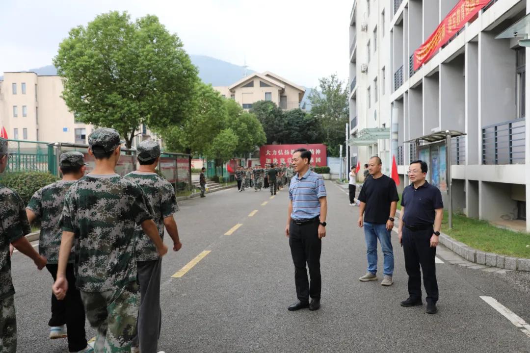 校领导分别前往操场等训练场地慰问并观摩学生训练,关心询问学生们身体状况。校领导高度赞扬了同学们在训练中展现出的饱满精神、严明纪律和优良作风,对大家取得的阶段性训练成果给予充分肯定,并对教官们严谨专业的教导表示感谢。同时叮嘱在场职能部门要切实关心军训学生生活,做好饮食安排、防暑降温和医疗保障等工作,共同交上一份满意的军训答卷。