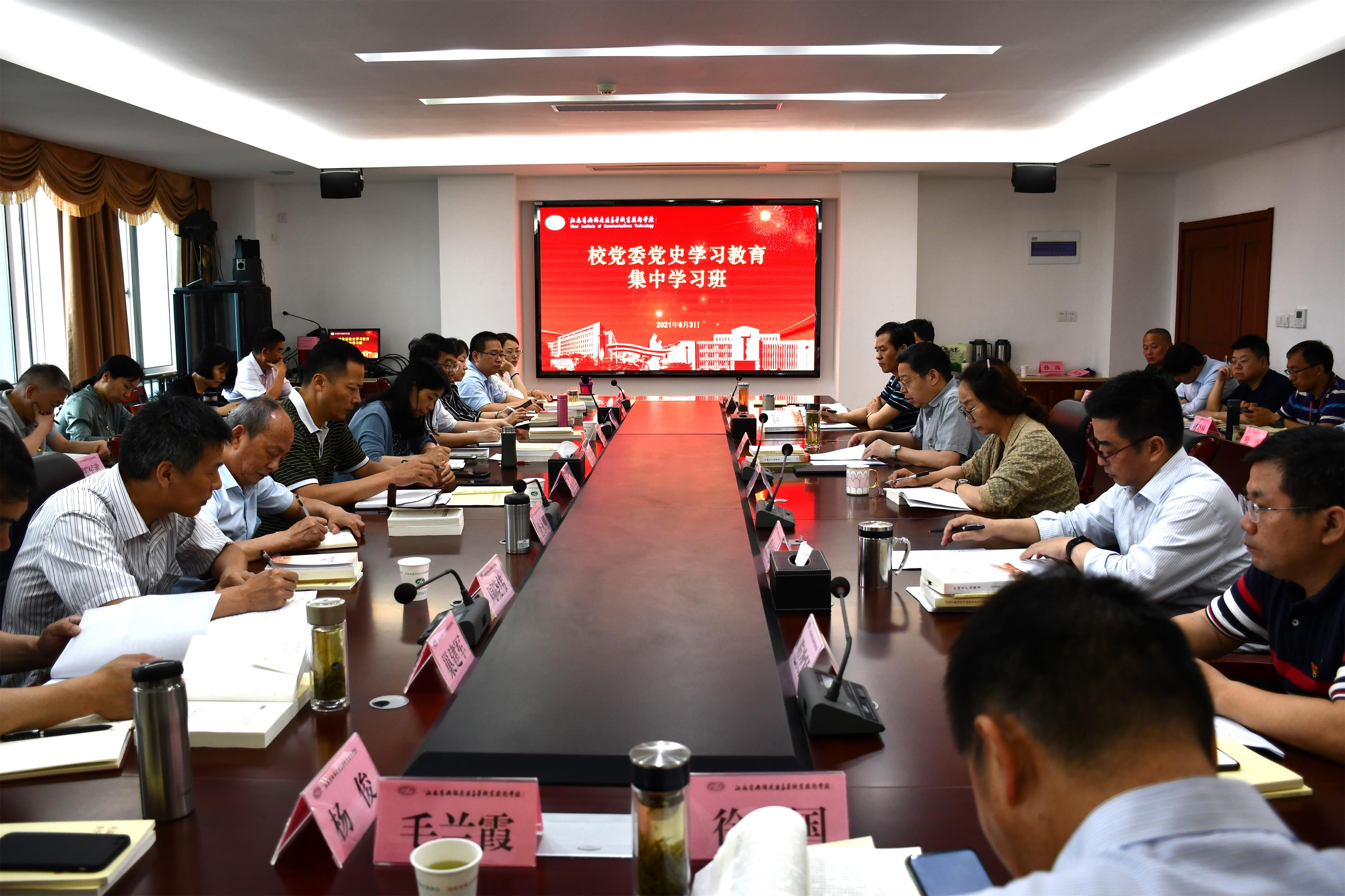 63日、4日、9日,学校举办为期三天的党史学习教育集中学习班。全体党委委员,各处室、院部负责人,各党总支(直属党支部)负责人及学校党史学习教育办公室成员近50人参加学习。