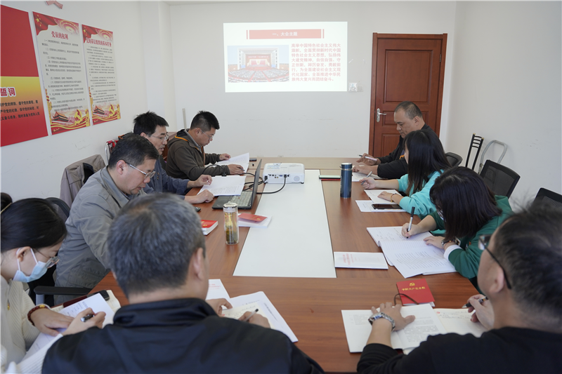 会议由直属党支部书记杨建明同志主持,他以导学的方式领学了党的二十大报告。图文信息中心主任王珏同志作了专题学习交流,其他同志也结合自己的学习和工作实际谈了自己的学习体会。