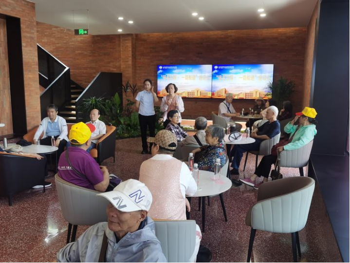 9点,大家首先在无锡睿客置业有限公司人员引导下参观“益路船递”服务驿站及红船场园区并合影留念,参观后大家感慨万千,近10点,老教职工们相聚红船场5号楼接待大厅,一场“银发生辉· 一路船递”座谈会就此展开,朱有功、刘德明、张大江、段祖玉、钱复荣、程国平等多名老领导、老教师、老员工讲述了船校、航校和老船厂的往事,盛赞改革开放成就。