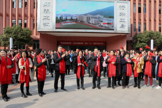 3月14日下午,无锡交校正德楼广场上,悠扬的歌声回荡在空中,“我和我的祖国”主题文艺快闪活动激情上演,师生们用热情激昂的歌声、优雅动人的口琴演奏、青春洋溢的啦啦操,庆祝 “三八”国际劳动妇女节,喜迎新中国成立70周年,抒发对党和祖国的热爱,为党和祖国献上最真切的祝福。