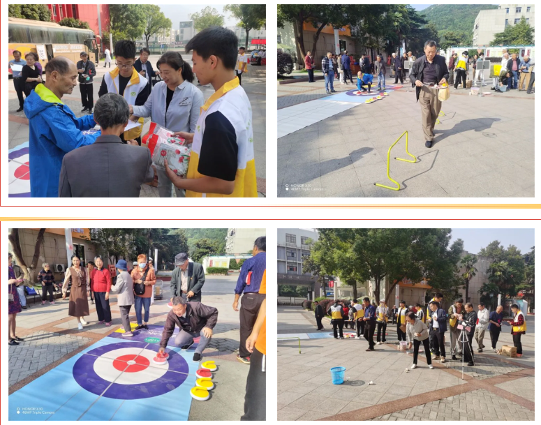 返校活动中,还举行了离退休趣味运动会。校工会为老同志精心准备了“筷子夹乒乓球”“投飞镖”“冰壶”“掼蛋比赛”等趣味活动。