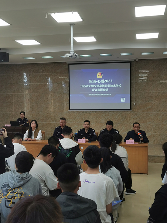 为积极响应全国反诈行动号召,增强全民反诈宣传力度,提高在校师生防范电信诈骗的意识和能力,进一步促进全体师生形成反诈的主动性和自觉性,避免师生受到网络诈骗的侵害。4月12日下午14:30,锡澄校区管理办公室、机械工程学院会同校警法制共建单位刘潭派出所开展了一场梁溪·心盾校园反诈警示教育宣讲会。无锡市梁溪区内保大队沈洪、刘潭派出所教导员陆云、副所长徐人凯以及机械工程学院教师、班主任、学生代表、班级安全员、社团负责人参加了宣讲会,校区办褚晓林主任主持本次宣讲会。