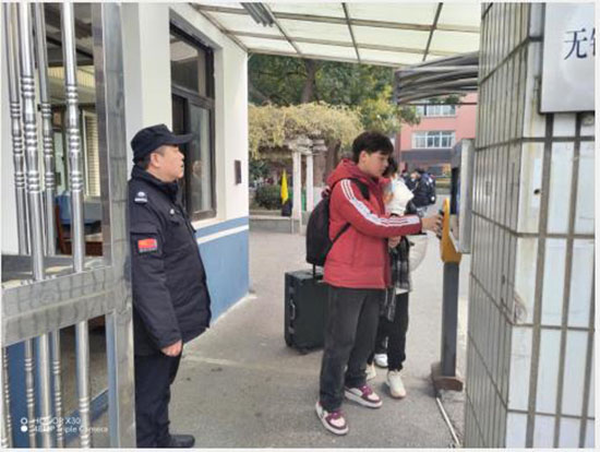 2023年12月29日锡澄校区各班级学生完成当天的学习任务准备元旦假期离校返家。校区办协调机械学院做好学生离校的智慧校园系统请假登记工作,下午临近放学时间,校区办杨蓉老师以及保安已经在校门做好学生离校出门检查,并对离校秩序做好现场监控,还不时提醒骑电动车的同学要戴好头盔,路上要注意交通安全。在系统刷卡声中,同学们井然有序地离校。愿新的一年里校园平安、师生安全、工作学业进步。