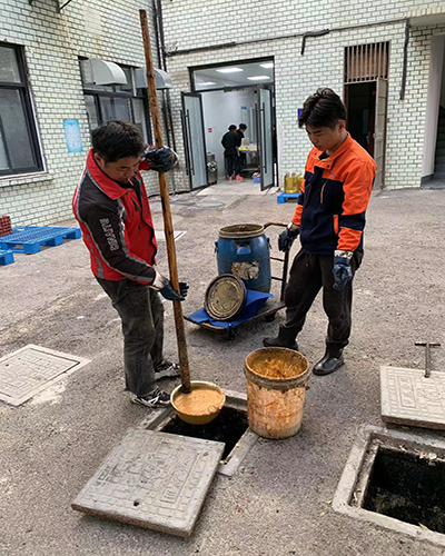 图为2024年1月2日校区废弃油脂为2023年下半年以来的第六次收运处置。