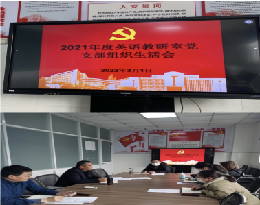 202231日下午,基础教学部英语教研室党支部全体党员在部门会议室开展了2021年度民主评议党员以及组织生活会,继续教育图文信息直属党支部书记杨建明同志列席会议,会议由党支部书记曹维忠同志主持。