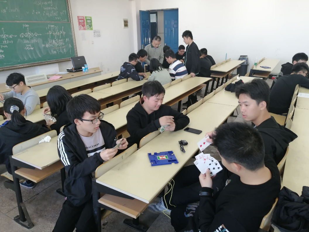 随后同学们在指导老师帮助下,完成组队,并进行了现场实际打牌活动。祁文坤老师针对学生遇到的问题,进行耐心细致的讲解。