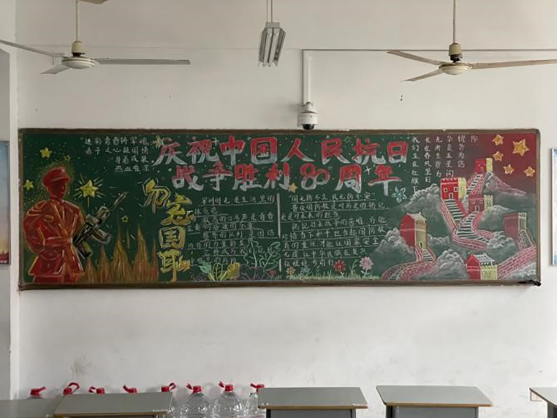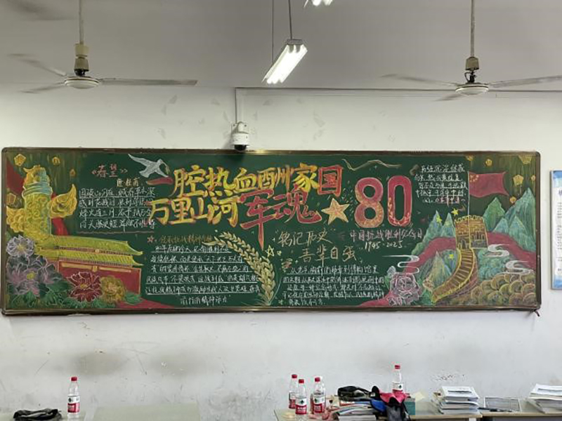 今日,凤凰体育机电工程学院的25级新生教室内焕新出彩,一幅幅主题鲜明的黑板报凝聚了新生们的心血,以“庆祝中国人民抗日战争胜利80周年”为统一主题的视觉教育阵地正式亮相,成为校园内一道厚重而鲜活的红色风景线。