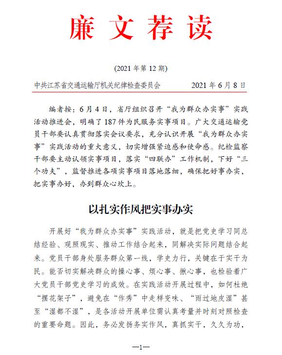 2021年廉文荐读第12期——以扎实作风把实事办实