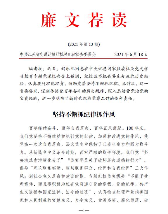 2021年廉文荐读第13期——坚持不懈抓纪律抓作风