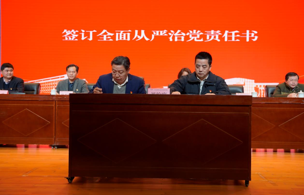 会上,学校纪委书记邢勇作题为《忠诚履职尽责 建设廉洁校园 为学校高质量发展提供坚强政治保证》的工作报告。集中观看了警示教育专题片《别让“自作聪明”毁了人生》。校党委书记李虎与党委委员签订了2022年全面从严治党责任书。