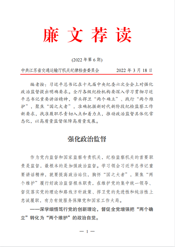 2022年廉文荐读第7期——紧盯“关键少数”加强对“一把手”监督