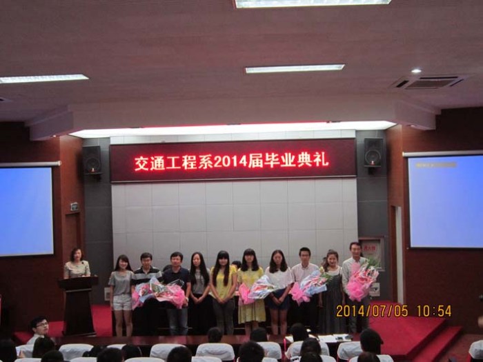 在《友谊地久天长》的旋律中,交通工程系2014届毕业生毕业典礼圆满结束。本次毕业典礼由交通工程系书记毛兰霞老师主持。