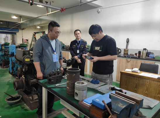 我校作为江苏省内河航运人才培养的重要基地和全省内河一类轮机实操考点,考评组严格依据《内河船舶船员适任实际操作考试规范》,依托校内高标准轮机实训中心先进设施设备,考评组重点对“设备操作管理、故障诊断、应急应变、设备检修”四大核心模块进行考核。考生在模拟真实船舶机舱的沉浸式环境中,完成机电设备管理、故障排除及检修等标准化操作,充分展现岗位核心技能。