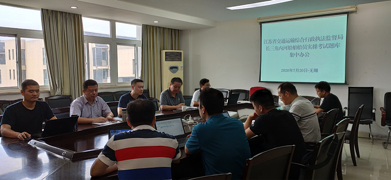 江苏省交通运输综合行政执法监督局组织专家于2020年7月 20 日至 23日在我校集中办公,研究目前长三角地区已有的内河船舶船员实操考试题库,并按照新的内河船舶船员实操考试规范要求重新编制统一的长三角内河船员实操考试题库。