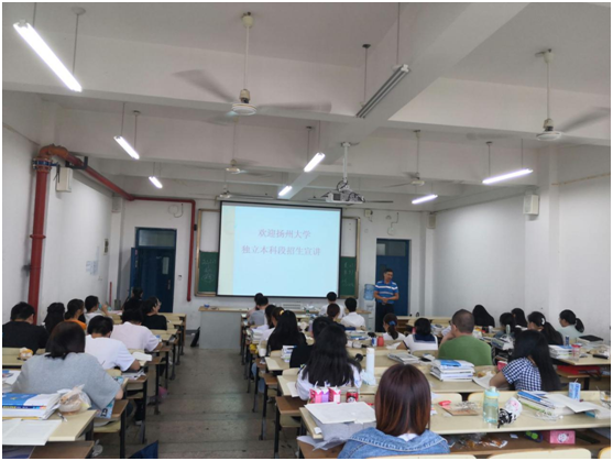 为进一步增强我校学生对扬州大学专接本独立本科段学习的认识,拓宽学生的升学渠道,65号上午扬州大学焦胜利主任一行来我校进行宣讲。