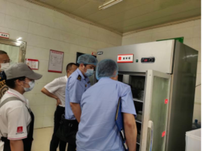 2023年6月20日滨湖区市场监督管理局荣巷分局学校食堂进行检查。此次检查重点对食堂食品库存、进货查验、就餐环境、餐饮具清洗消毒、设施设备维护、剩饭菜及留样处理、从业人员健康管理等方面进行全面检查,对发现的问题现场提出整改意见,要求食堂负责人及时消除风险隐患,确保广大师生的食品安全。