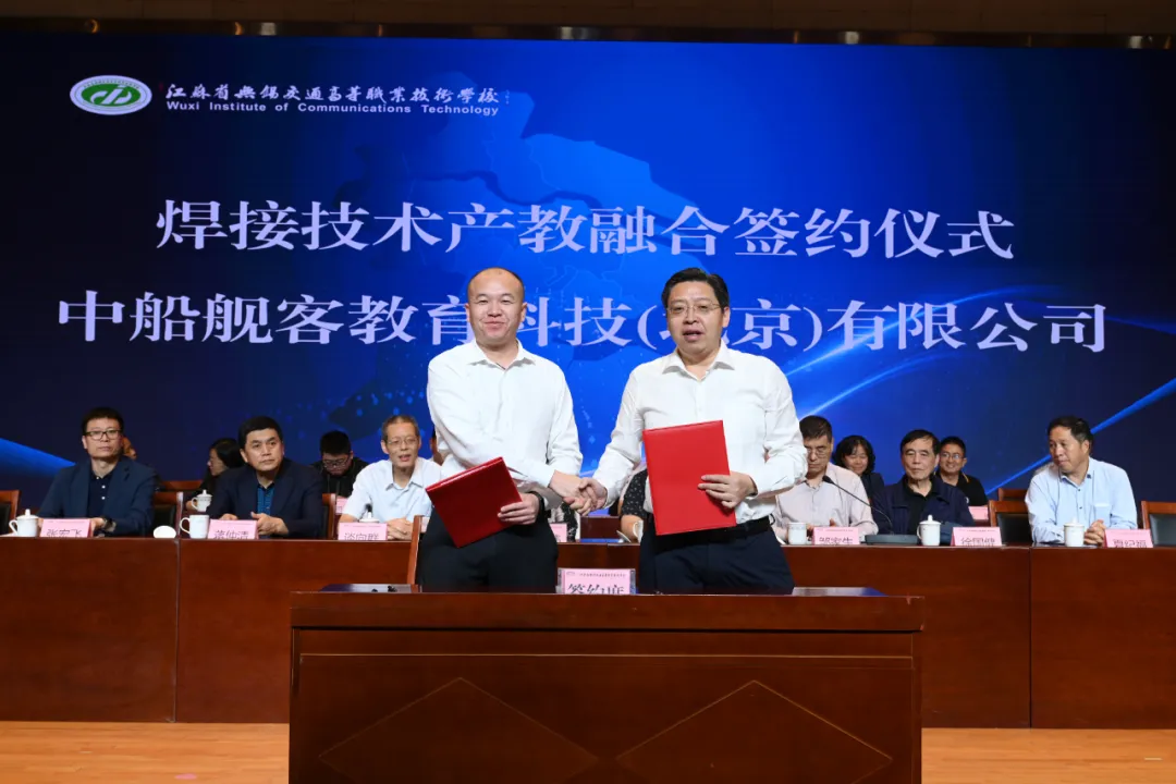 大会进行了校企合作项目签约仪式。仪式由凤凰体育党委副书记朱雨兰主持。校党委书记、校长李虎与中船舰客教育科技(北京)有限公司华东区负责人杨磊签署了焊接技术产教融合合作框架协议书;与江森自控空调冷冻设备(无锡)有限公司培训中心主管何育宇、无锡华光环保能源集团股份有限公司总工程师顾全斌签订了焊接技师项目企业新型学徒制合作协议。
