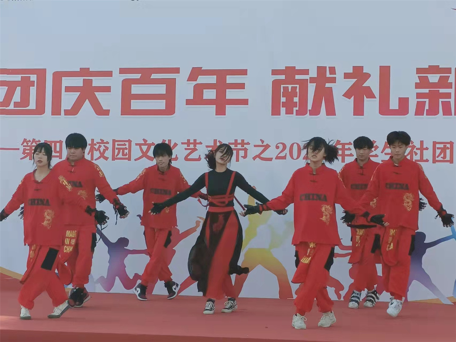 舞台展示中,共展示了包含歌曲、舞蹈、话剧、快板、朗诵、表演秀等节目形式的25个形式多样、编排新颖的节目,充分体现了社团特色,展示出社团活动成果。炫酷炸裂的街舞,点燃了一把激情四射的火;动听美妙的歌声,让台下的观众感受到了听觉盛宴;婀娜多姿的舞蹈,跳出了“风吹仙袂飘摇举,犹似霓裳羽衣曲”的韵味;饱含深情的朗诵,吟出了对祖国对党的深情礼赞……一个个精彩节目,赢得了观众一次次热烈的掌声,现场的氛围也被一次次推向高潮。
