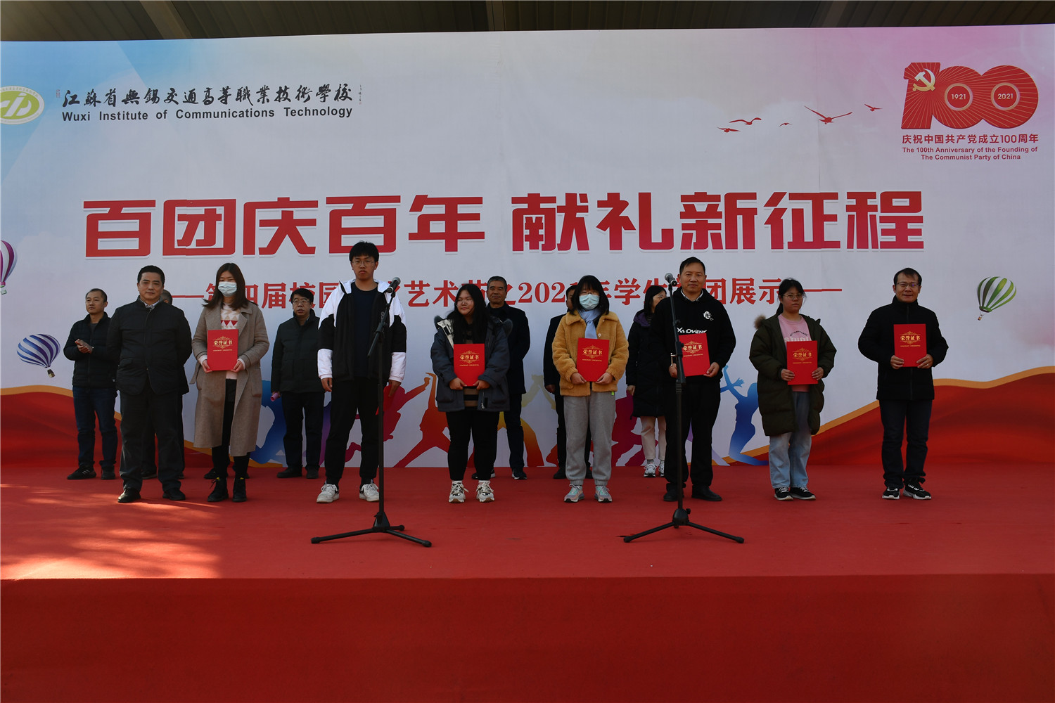 12月1日,学校第四届校园文化艺术节之“百团庆百年 献礼新征程”2021年社团展示活动在学校操场成功举办。校党委委员、副校长倪依纯出席本次活动并讲话。