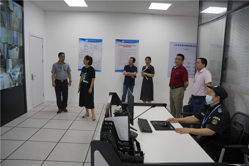 季处长一行先后走访了学校江苏省交通装备工业机器人、焊接实训基地、电气自动化技术实训基地、监控中心、核酸采样点、防疫物资库等重点场所,详细了解学校人员管理、防疫物资储备、学校开学准备、意识形态工作责任制落实、实训基地建设等情况。
