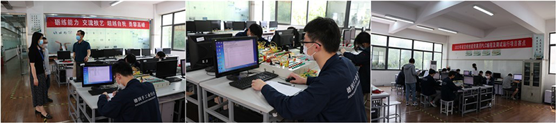 本次竞赛活动共设PLC 编程及调试运行、电气安装及排故和工业机器人应用编程3个竞赛项目,各有特色,共有76名学生报名参加比赛。比赛中,参赛学生精神抖擞、技术熟练,信心十足、表现出众,出色地完成各自的参赛项目,充分展示了机电学子良好的精神风貌,扎实的专业基本功,精湛的技术能力和追求卓越的工匠精神。