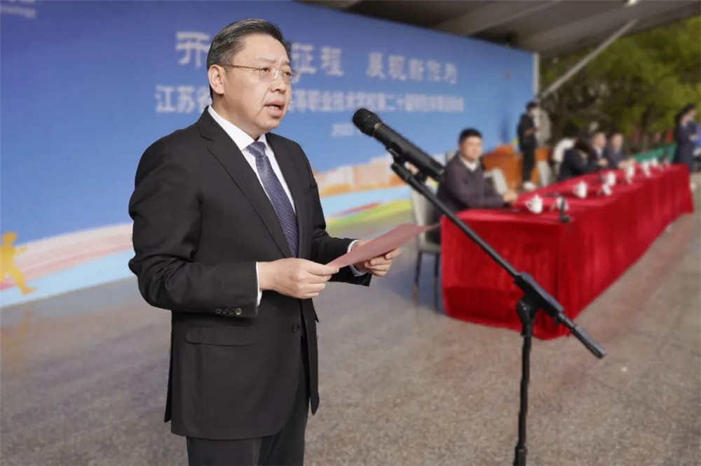 李虎书记致辞。他指出,近年来,学校坚持三全育人、落实五育并举,持续加强学生健康教育,塑造自主自律的健康行为,培育良好的健康生活方式,通过开展两课两操、啦啦操、花样跳绳等特色项目,让更多师生热爱体育、参与体育、分享体育。他强调,师生运动会不仅是一次体育盛会,也是广大师生激扬青春,展示风采的舞台,更是对校园文化品位、师生精神风貌的一次大检阅。他希望全体运动员精神饱满,坚持团结、友谊、拼搏、向上的宗旨,发扬“更快、更高、更强、更团结”的奥林匹克精神,遵循“公开、公正、公平”的竞赛原则,弘扬体育精神,赛出风格,赛出水平,展现交校师生的风采。各班级、学院要弘扬体育精神,营造良好的赛事氛围,为夺取运动成绩和精神文明双丰收作贡献。最后他希望广大师生员工要以强健的体魄、昂扬的斗志,学习宣传贯彻党的二十大精神,推动学校各项事业高质量发展。