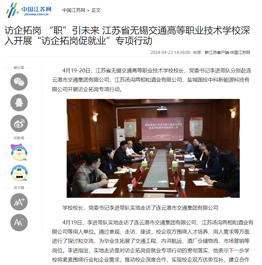 中江网:凤凰体育校长、党委书记李进带队赴南通、靖江等地开展“访企拓岗促就业”专项行动