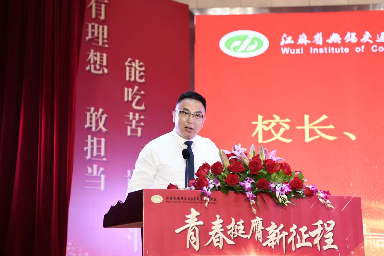 上海交通大学博士生导师肖刚教授作为校友代表发言,他勉励同学们要有感恩之心、责任之心、知学之心,投身交通强国建设之中,用奋斗的青春书写人生新篇章。无锡市石油化工设备有限公司党支部书记、质量安全总监柳博作为合作企业代表,向毕业生分享了三点成长体会:爱学习、爱工作、爱自己和家长,祝愿同学们在未来的青春岁月里心想事成,大有作为。