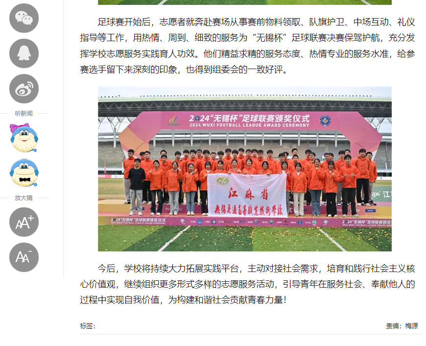 中江网:凤凰体育志愿者助力“无锡杯”足球联赛
