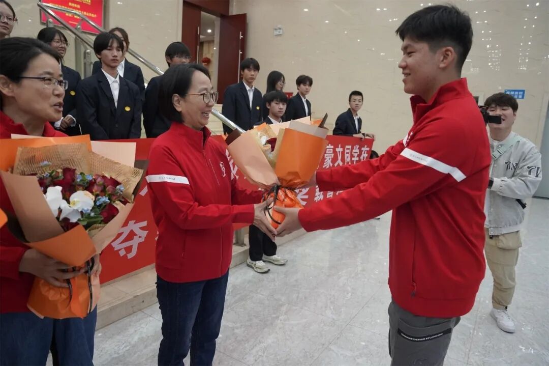 10月30日下午,学校举行欢迎仪式。在大赛领队、学校党委副书记朱雨兰老师的带队下,我校获奖选手陈玺和浦豪文携荣誉凯旋而来。学校党委委员、副校长耿兴华向获奖选手表示祝贺:“祝贺你们取得可喜的成绩,也感谢你们的努力拼搏,为江苏争光、为学校争光!”参赛选手陈玺和浦豪文则表示:“取得满意的成绩,要感谢学校的培养,感谢大赛主办方提供的竞技平台,感谢指导老师的辛勤关怀,希望在今后学习生活中也将不断提升自身技能,努力为学校争光。”获得“优秀指导教师”称号的李俊、沈加仁老师表示,“感谢学校提供的这样一个成长锻炼的平台,通过这次大赛为今后指导学生比赛工作积累不少经验,也为后续工作打下扎实的基础。”周围不断响起热烈的掌声。