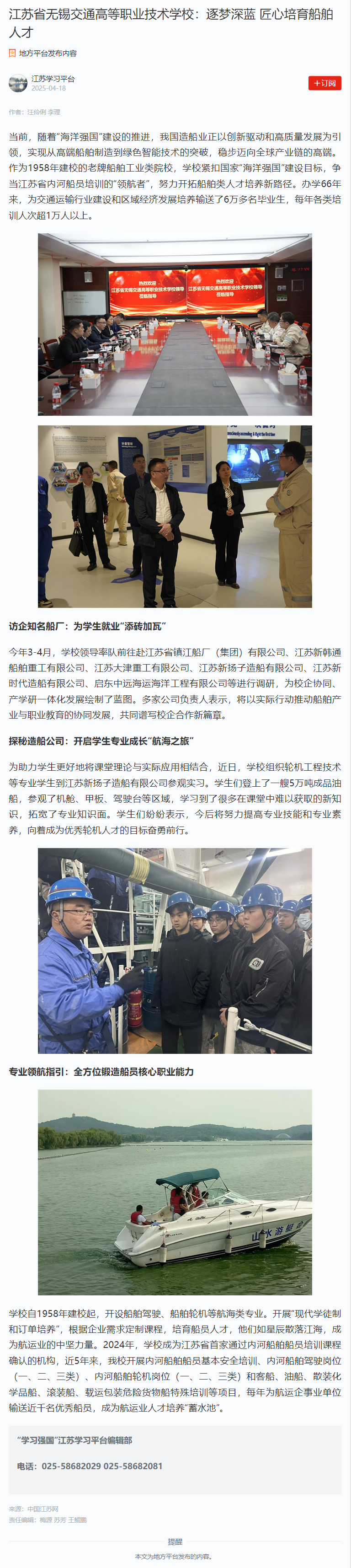 学习强国:凤凰体育:逐梦深蓝 匠心培育船舶人才