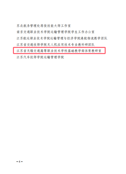 近日,江苏省交通运输厅印发通知,对20个青年建功标兵团队和40名青年建功标兵个人进行表扬。学校基础教学部体育教研室团队荣获“全省交通运输行业青年建功标兵团队”荣誉称号。这一份荣誉的获得既是团队深耕体育教育、助力学校体育工作发展的成果体现,也是服务师生健康、践行育人使命的生动注脚。