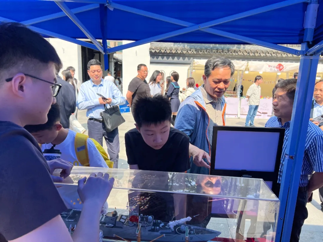 在技能展示区,学校船舶工程学院深蓝社学子以创新工艺惊艳活动现场,团队融合激光切割、流体仿真等数字技术,结合纳米涂层防水性能,将废弃的马口铁变身精密“武汉舰”,用卡纸折叠成流线型“东风号”,让工业废料重焕新生。展台前,大批市民朋友前来围观,师生们热情向大家介绍制作原理。 此次亮相的船模作品先后斩获全国海洋航行器大赛特等奖、国际职教巧手大赛一等奖及"挑战杯"金奖等多个奖项,并多次走进中小学课堂。
