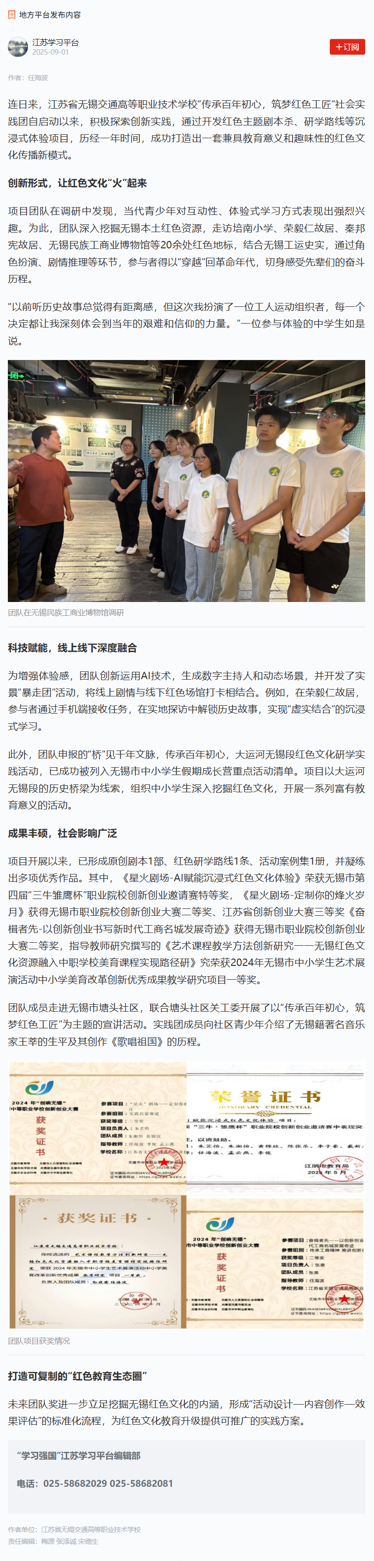 学习强国:传承百年初心 无锡交校学子让红色文化“火”起来