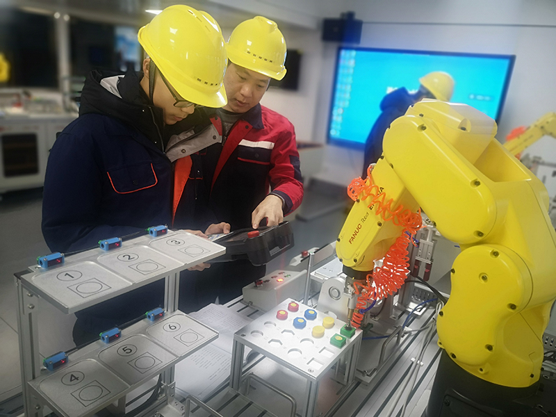 20202021两年暑假,支部党员陈经纬、陆畅都能冒着酷暑参加了工业机器人1+X证书师资、考评员培训,他们克服了重重困难,在炎炎夏日里放弃了大量的休息时间,参加培训。俗话说“想给学生一杯水,老师要先有一桶水。”为了能教好学生,两位老师自己先行辛苦钻研,先期深入牢固地掌握各项技能。