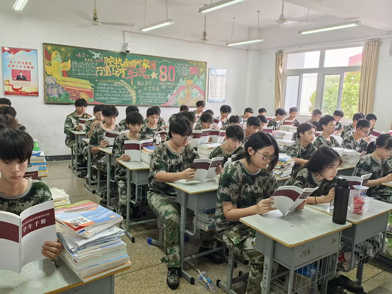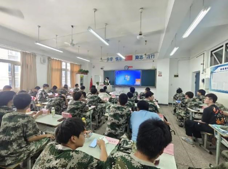 军训总结环节里,班主任与学生一同回溯军训点滴:从整齐划一的队列训练、细致规范的内务整理,到干货满满的国防知识学习、紧张有序的汇演彩排,每一段经历都成为成长的注脚。伴随着优秀内务宿舍照片的展示、军训精彩瞬间视频的播放,班级在军训中的亮眼成果跃然眼前,班级凝聚力悄然升温。