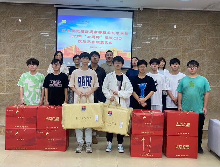 顾院长宣读了“大通杯”机械CAD技能竞赛和“大通杯”三维数字化设计技能竞赛获奖名单,并为获奖选手颁发了奖品,奖品由上汽大通(无锡)分公司赞助。