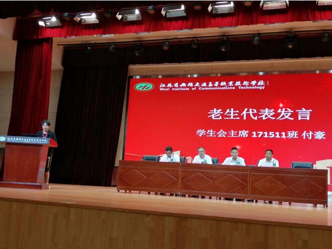 新生入学仪式由学院副院长金传琦主持。学院院长郑军武、党总支书记周晓伟、党总支副书记吴传全、综合办主任王惠、学工办主任程海波、各教研室主任、实训中心主任、学工干事、辅导员、2020级新生及班主任、军训承训教官等与会。