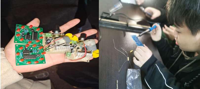 此次活动社员们在指导老师的配合下圆满结束,社团成员们在此次社团活动中收获满满,大家不仅学到了许多关于电路板的知识和如何正确使用电烙铁,同时也学会了劳动匠心、团结合作等精神。