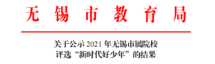荣获2021年无锡市属院校“新时代好少年”荣誉称号 喜报