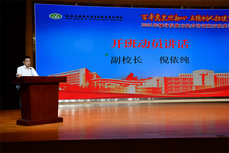 开班典礼上,倪依纯副校长作开班动员讲话,他指出辅导员队伍是学生管理以及思政工作中一支不可替代的中坚力量,是最接近学生、最关心学生、最受学生信任的人。他强调辅导员要不忘立德树人初心,把思想政治教育工作贯穿教育教学全过程,实现全程、全员和全方位育人的局面。倪校长要求全体辅导员要做事业的明白人,成为学生思想道德的培养者,要做工作的内行人,成为学生思想政治教育的研究者,要做学生的贴心人,成为学生学习生活的信任者。