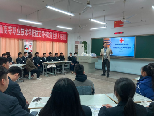 学校还邀请无锡市红十字会孙昕主任面向2021级班长举办防艾同伴教育主持人培训班,为我校培养出50名优秀的防艾主持人,并通过他们把艾滋病知识传播给更多的社会大众,达到预防艾滋、反对歧视的活动宗旨