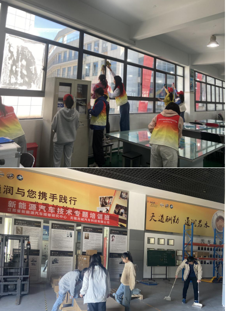 全体学生根据劳动委员的分工明细,由两名副班长带队,前往南、北校园的物流实训室进行大扫除,同学们分工明确、动作迅速、井然有序,在同学们认真的打扫下,实训室变得干净整洁,焕然一新。