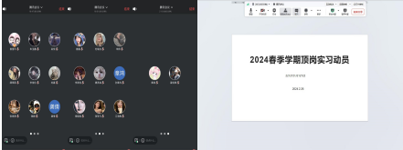 为规范顶岗实习管理,引导学生树立正确的实习观念,强化安全意识和责任意识,我院综合办制定物流管理学院2024届毕业生岗位实习管理工作方案,学工办组织各班级召开了2023-2024学年顶岗实习动员暨安全教育主题班会,各班级充分利用腾讯会议、QQ、微信等现代通信手段,明确实习任务。